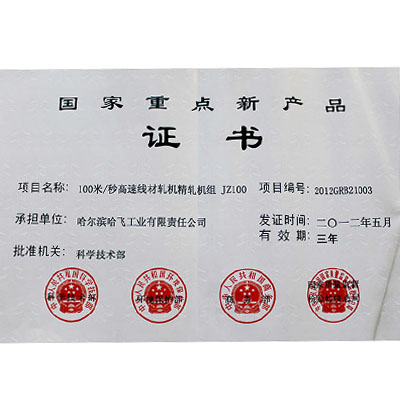 國(guó)家重點(diǎn)新產(chǎn)品證書